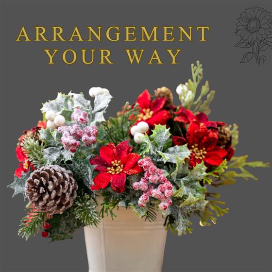 Create something truly special! Choose our Christmas arrangement – Your Way and share your preferred colours with us. Our artisan florists will craft a truly unique design. No need for a vase, everything is beautifully contained in a carefully picked ceramic. This is a fresh floral design perfect for bringing festive cheer without the fuss, it's a gift suitable for the seasons celebrations or just because.