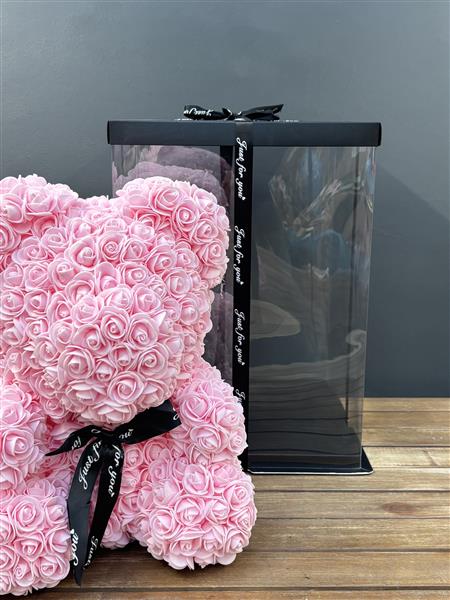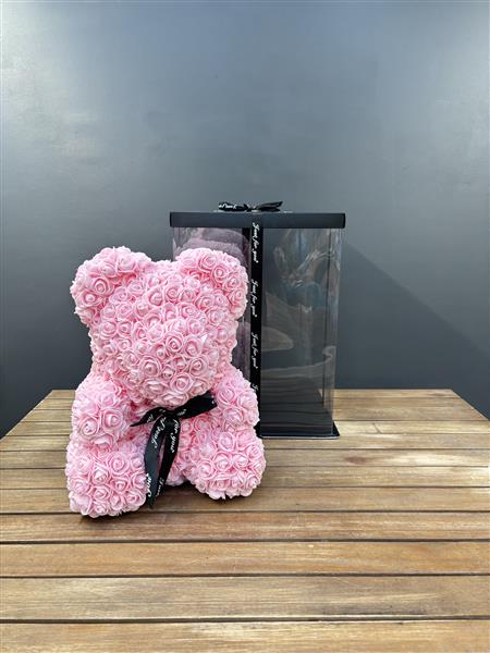 Make a lasting impression with our Forever Rose Bear, a timeless symbol or love and affection. Handcrafted from delicate foam roses, this stunning bear stands 40cm tall and is designed to last for years without fade or fault. Carefully arranged to create a luxurious, eye-catching piece that captures the beauty of real roses with none of the maintenance. Beautifully in an elegant gift box making it ready to give and unforgettable to receive.