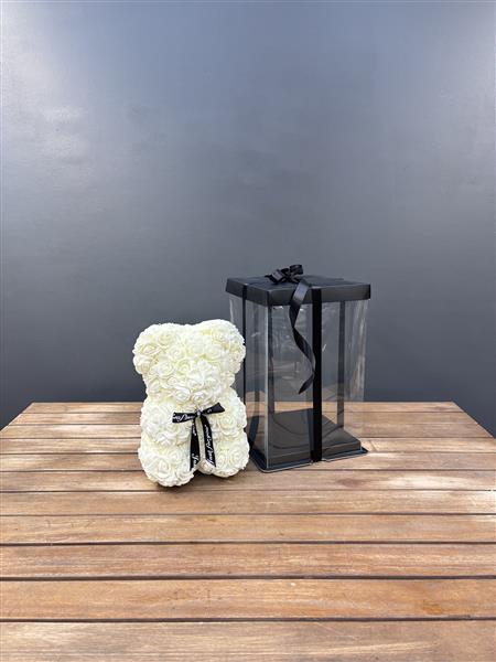 Make a lasting impression with our Forever Rose Bear, a timeless symbol or love and affection. Handcrafted from delicate foam roses, this stunning bear stands 25cm tall and is designed to last for years without fade or fault. Carefully arranged to create a luxurious, eye-catching piece that captures the beauty of real roses with none of the maintenance. Beautifully in an elegant gift box making it ready to give and unforgettable to receive.