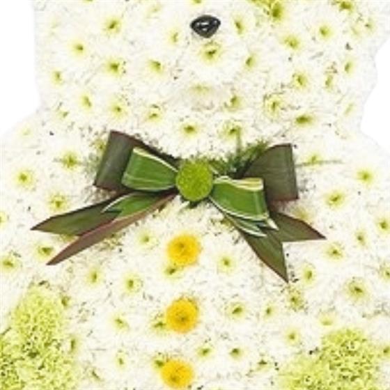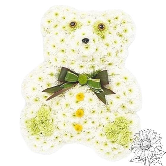 A comforting and gentle tribute, perfect for a child's funeral or memorial service. This cuddly teddy bear is a touching symbol of love and innocence, offering solace during a difficult time. The colour of the finishing touches can be changed by request.