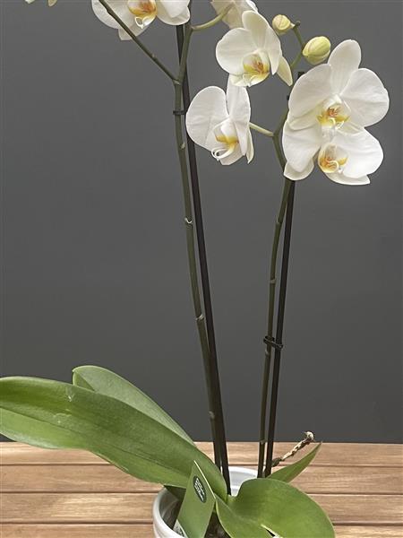 Bring a touch of effortless elegance into your home with this stunning Double Stem White Orchid Plant. Known for its graceful arching stems and pristine white blooms, this beautiful orchid creates a sophisticated focal point in any room. Each plant features two flowering stems, producing multiple delicate blossoms that appear to float above glossy green leaves, offering long-lasting beauty and a calm, luxurious feel.